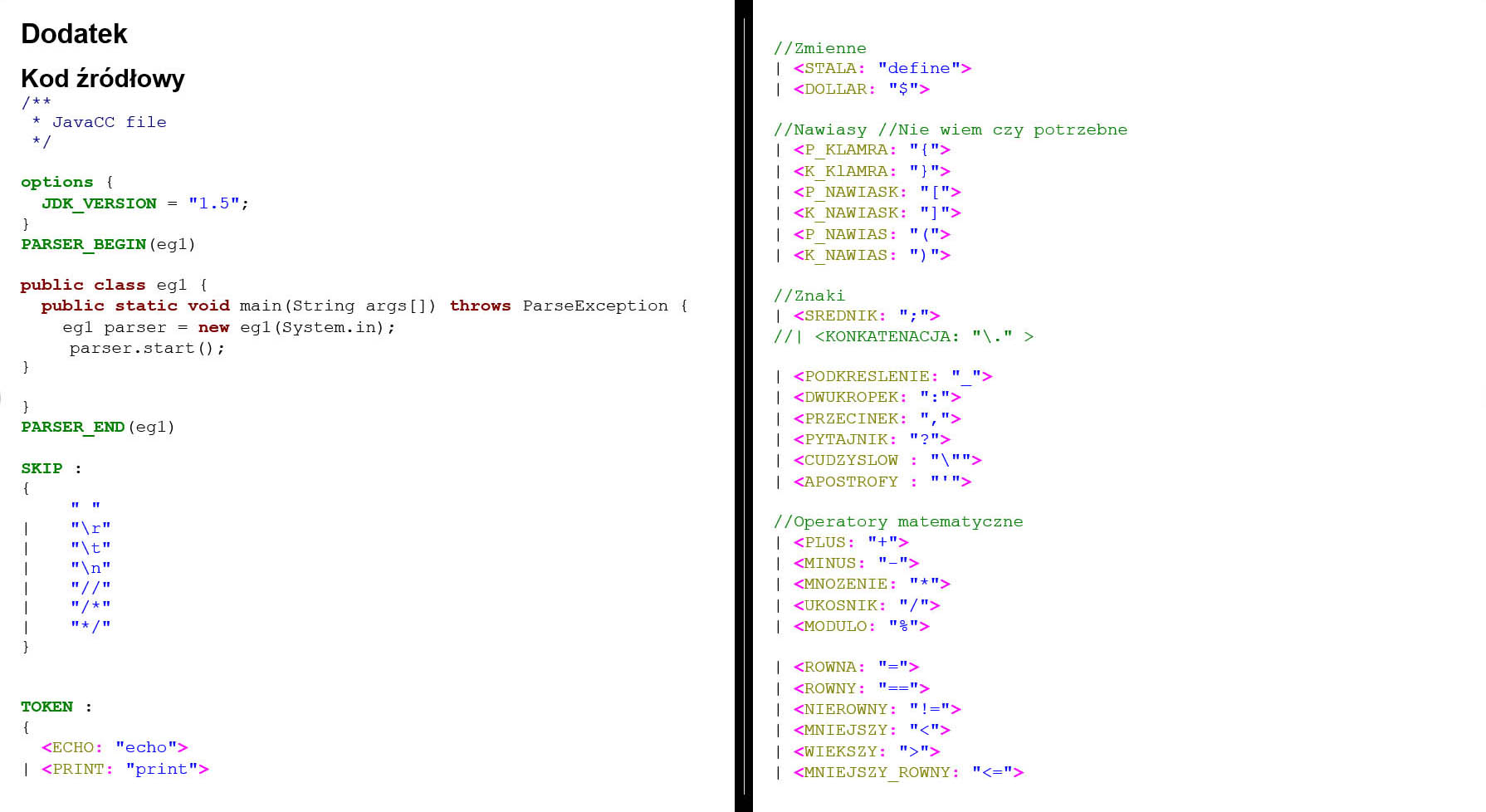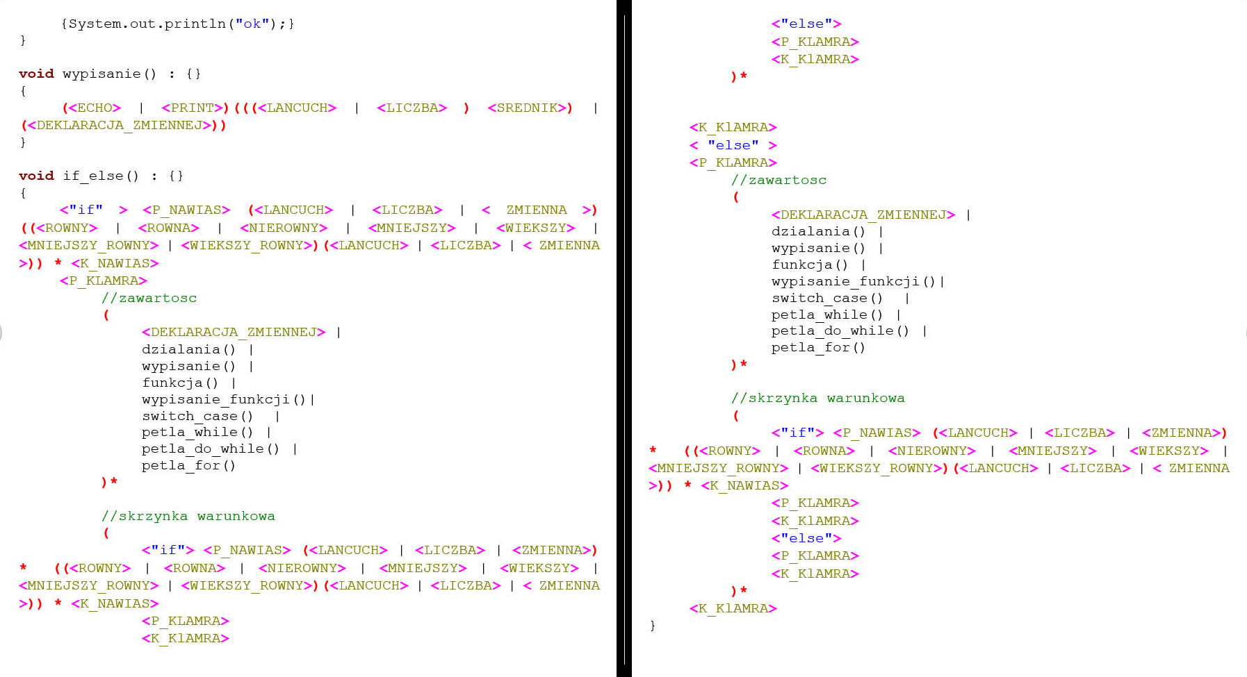 The analyzer allows you to easily analyze the syntax of the PHP programming language. The project was created to pass the subject Construction Compilers. JavaCC is a parser generator for Java, operating on LL (k) grammars.